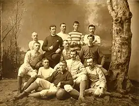 The football team was managed by the university's Rugby Association. In early October, the Association met and elected Edward Adolphus Rosenthal as the president, Frank G. Higgins as the vice president, Ross L'Estrange Mahon as the treasurer, Edward Lester Dorn as the corresponding secretary, and James S. Skinner as the recording secretary. Henry Killilea was appointed as the manager.[2][3] At a meeting held on the Tuesday before the Chicago game, Horace Greely Prettyman was elected as the team's captain.[4]