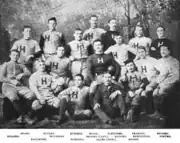 The 1886 Harvard Crimson football team represented Harvard University in the 1886 college football season. The team finished with a 12–2 record and outscored opponents 765 to 41 under first-year head coach Frank A. Mason.[1][2] On November 3, 1886, in a game played at Exeter, New Hampshire, the Crimson defeated the team from Phillips Exeter Academy by a score of 158-0, the highest point total ever achieved in a football game to that point.[3] The team's two losses were against rivals Princeton (0–12) and Yale (4–29). Princeton and Yale are recognized by various selectors as the 1886 national champions.