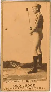 Detroit's #2 starter was Charles B. "Lady" Baldwin. Baldwin played four seasons with the Wolverines. In 1886, Baldwin had a record of 42–13 (the most wins ever by a Detroit pitcher) with a 2.24 ERA in 487 innings pitched, striking out 323 of 1936 batters faced. Baldwin also completed 55 of 56 games, seven of which were shutouts. In 1887, Baldwin's appearances were reduced from 56 games to 24, and from 487 innings to 211. He won only 13 games in the regular season for the 1887 Wolverines, but in World Series play, Baldwin pitched 5 complete games for a 4–1 record and a 1.50 ERA.
