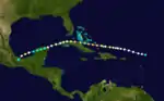 On August 31, a tropical storm was observed northeast of the Lesser Antilles. It moved westward, strengthening to a hurricane later that day. As it continued to strengthen, it brought heavy rain over Puerto Rico, the Turks and Caicos Islands, and Cuba. The hurricane passed Puerto Rico far off land but brought heavy rains that caused major flooding and over 100 deaths due to river flooding (similar to Hurricane Donna in 1960). On the 3rd, it reached its peak of 130 mph, but land interaction with Cuba weakened it to a minimal hurricane. It crossed the island and the Yucatán Channel, reaching the northeast coast of the Yucatán Peninsula on the 6th. After weakening to a tropical storm, it restrengthened to a Category 2 hurricane while moving southwestward in the Bay of Campeche, but it dissipated after its Veracruz landfall on the 8th. It caused 921 deaths.
