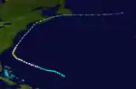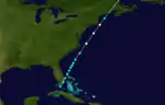 A tropical storm formed south of Key West on September 23 and began moving northeast. It travelled parallel to the coast of Georgia, where it produced winds of 65 mph (105 km/h; 29 m/s) before becoming a Category 1 hurricane on September 26. It continued heading northeastward before it became extratropical on September 27 near the Gulf of St Lawrence.
