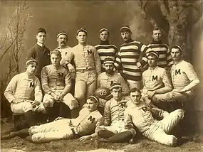 The 1888 Michigan Wolverines football team represented the University of Michigan in the 1888 college football season. The team compiled a 2–1 record and outscored its opponents by a combined score of 94 to 36. The team scored 76 points against Albion College, a single-game Michigan record that stood until Fielding H. Yost's 1901 "Point-a-Minute" team scored 128 points against Buffalo. The team closed its season with a Thanksgiving Day game against a "picked team" from the Chicago University Club that The New York Times called "undoubtedly the greatest football event that ever took place in the West."[1] The captain of the 1888 team was halfback James E. Duffy who had set the world's record for dropkick distance in 1886.
