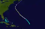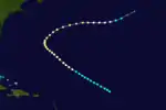 A tropical storm formed south of the Cape Verde Islands on 17 August and travelled on a northwesterly path before dissipating in the Atlantic Ocean on 29 August without making landfall. For the majority of this period, it is believed to have been at least a Category 1 hurricane based on several factors: readings taken at Bermuda, which it passed on 27 August; the capsizing of a steamer, the Dunsmurry, on 29 August; and observations from another ship, La Touraine, which on 30-31 August encountered the rough seas left in the hurricane's wake.[2]