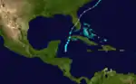A moderate tropical storm formed in the Caribbean Sea south of Jamaica on 4 October and passed to the west of both Jamaica and the Cayman Islands before striking the Isla de la Juventud and Cuba on 6 October. The next day it passed across southern Florida before travelling northeastward off the east coast of the United States and then dissipating in the open Atlantic on 8 October. The storm drove some vessels on the coast of Cuba ashore, and two people drowned in flooding on the island.[2]