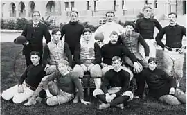 Whittemore acted as de facto coach, drawing up plays and organizing practices.[1] The team won its first two games against Hopkins Academy and Berkeley Gym before losing to a team from San Francisco's Olympic Club.[2] In its final game of the first season, Stanford upset a more experienced team from the University of California, Berkeley, setting the stage for what would become the longstanding Big Game rivalry.[1][3][4]