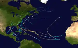 The 11th storm of the season formed just south of the Isla de la Juventud on October 20. After moving through Cuba, it strengthened to a 60 mph (97 km/h) storm before it hit the Delmarva Peninsula on October 23.