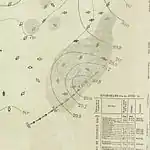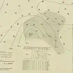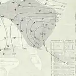 The third storm of the season formed on August 13 east of the Lesser Antilles. It steadily strengthened to a hurricane while moving over the Leeward Islands. While approaching Puerto Rico on August 16, its winds increased to major hurricane status before landfall at Patillas. It crossed the island and exited near Isabela.[5] There were heavy rains over the island of Puerto Rico and damages to the agricultural crops, especially coffee. In San Juan 2.36 inches of rain were reported.[5] The eye remained over Puerto Rico for a period of seven hours. The lowest barometric pressure reading recorded in San Juan was 29.17 inches. Four deaths were reported. This was the first hurricane in Puerto Rico where flags were used to alert the public about the danger of an approaching hurricane; they were flown from government buildings.[5][6]