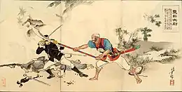 One of the most successful insurgent attacks was made on 11 July on a party of 35 Japanese infantrymen who were conveying supplies by boat from Taipei to Tokoham. The Japanese were ambushed, and although they fought bravely, all but one of the party were either killed or so badly wounded that they committed suicide rather than fall alive into the hands of the enemy. The Japanese pursued the insurgents and defeated them on 12 July in an engagement at Long-tampo.[31]