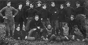 The starting lineup was Boogher (left end), McAlister (left tackle), Whitemore (left guard), Brown (center), Hassett (right guard), Langhorst (right tackle), Stringfield (right end), Goodson (quarterback), Connell (left halfback), Dye (right halfback), Farrell (fullback).[6]