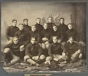 Despite finishing with a losing record, the 1898 Dartmouth team was regarded by some eastern sportswriters, most notably Outing, to be the best fielded by head coach William Wurtenburg.[2] Against an expanded schedule, the squad went only 5–6, but managed to outscore their opponents by a total of 205–137. The year began with a defeat of regular opponent Phillips Exeter Academy, and was followed by a shutout loss to Harvard. After two consecutive wins over nearby schools, Dartmouth lost to former Triangular Football League opponent Wesleyan, 23–5.[3] The following two contests were against Triangular Football League opponents Amherst and Williams. The latter game was regarded as Dartmouth's most significant game of the season by eastern sportswriters, since Williams had hired two new coaches and expanded practices in order to win the conference in 1898. Dartmouth outdid Williams, however, and defeated them 10–6 to claim a sixth straight conference championship.[2] The season ended on a sour note with four straight losses on the road, two of them coming against Midwestern teams.[3]