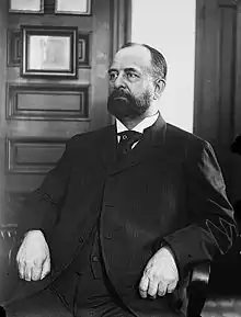 The Republican bosses Thomas C. Platt and Benjamin B. Odell, Jr., were still busy to compose a ticket on September 25, but had already agreed upon Theodore Roosevelt to head it, against the wish of Governor Frank S. Black to be re-nominated.[3] The state convention met on September 27 at Saratoga Springs, New York. Sereno E. Payne was Temporary Chairman until the choice of Horace White as Permanent Chairman. Theodore Roosevelt was nominated for governor on the first ballot (vote: Roosevelt 753, Black 218).[4] The other candidates were nominated by acclamation with exception of John C. Davies for Attorney General who was nominated on the first ballot (vote: Davies 741, John M. Kellogg 229).[5]