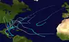 This tropical storm was previously unidentified and was not considered a tropical storm until research by José Fernández-Partagás in 1997.[15] The storm is believed to have originated west of the Canary Islands in the northeastern Atlantic on September 22. The tropical storm moved west-southwestward for several days, maintaining its peak winds of 70 mph (115 km/h); however, the storm began to curve early on September 26 and traveled directly westward before curving northward during the afternoon. The tropical storm continued to change course, turning west-northwestward by September 28. The transitioned to an extratropical system on October 1,[2] and reached England on October 3.[15]