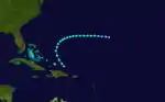 The fourth storm of the season was believed to have originated as a tropical storm off the coast of Africa on August 25. The storm slowly intensified, eventually reaching hurricane status on August 28. As the storm headed west-northwestward on August 31, it passed by the Lesser Antilles as a Category 2 hurricane. The storm became a Category 3 hurricane on September 2 as it passed north of the Dominican Republic. The storm further intensified into a Category 4 hurricane on September 5, located east of the Bahamas. Throughout the day on September 6, the hurricane began to curve northward. During the evening, it weakened to Category 3 status and began to travel northeastward on September 7.[2]