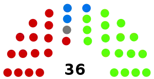 | Party | Votes | % | Swing | Seats won | Seats held | Change | |