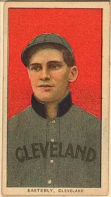 Catcher Ted Easterly, a 20-year-old Nebraska native, began playing professional ball for Pasadena in 1905 and played for San Diego in 1907.[4] During the 1908 season, he appeared in 123 games, led the team with a .309 batting average, and hit for a .399 slugging percentage.[1] The Chicago Cubs tried to purchase him during the 1908 season, but the Angels' sale prices was not accepted. He was acquired by the Cleveland Naps for the 1909 season.[4] He played seven seasons in the major leagues.