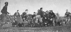 The game was played at Ferry Field, and promotional "bargain day" prices attracted a large crowd.[35] Walter Camp, the "Father of American Football", attended the game, which was accompanied by "the usual cheers, the usual parade of the student band, the usual singing of 'The Yellow and the Blue' and all the other things that go to make up a game at Ferry field."[35][36] When the Michigan team ran onto the field at 2:05 p.m., Michigan's quarterback William Wasmund had his head "swathed in bandages."[36]