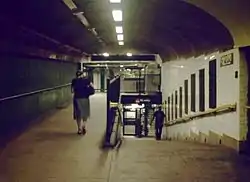 In July 2003, to reduce costs, the Metropolitan Transportation Authority (MTA) announced that as part of its 2004 budget it would eliminate 22 elevator operator positions at this station and four others in Washington Heights, leaving one full-time operator per station.[23] The agency had intended removing all the attendants at these stops, but kept one in each station after many riders protested. The change took effect on January 20, 2004, and saved $1.2 million a year.[24] In November 2007, the MTA proposed savings cuts to help reduce the agency's deficit. As part of the plan, all elevator operators at 190th Street, along with those in four other stations in Washington Heights, would have been cut.[25] MTA employees had joined riders in worrying about an increase in crime as a result of the cuts after an elevator operator at 181st Street on the Broadway–Seventh Avenue Line helped save a stabbed passenger.[26] The move was intended to save $1.7 million a year. However, on December 7, 2007, the MTA announced that it would not remove the remaining elevator operators at these stations, due to pushback from elected officials and residents from the area.[27] In October 2018, the MTA once again proposed removing the elevator operators at the five stations, but this decision was reversed after dissent from the Transport Workers' Union.[28]
