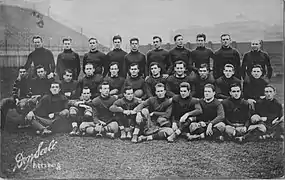 Coach Thompson was assisted by Floyd Rose and Alexander Stevenson along with occasional help from former players.[15] Jack Adams was hired as trainer.[16] He had a good nucleus of returning veterans for the 1911 season: captain/end Jack Lindsay, quarterback Tillie Dewar, tackles Henry Blair and James Stevenson, halfbacks George Brown and Charles Quailey, center Ralph Galvin, guards George Gehlert and Ross Feightner and end Hube Wagner.[17]