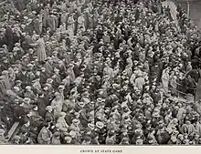 "On a perfect gridiron and on a rare November afternoon the Penn State football team defeated the University of Pittsburgh eleven yesterday afternoon at Forbes Field by a score of 3–0. (Pete) Mauthe, the white and gold's fullback, kicked a goal from placement in the first quarter....The last act of the annual football drama at the University of Pittsburgh was well staged. The scenario was the bare hills of Schenley Park as a drop curtain; a dry field, scattered over with straw, was the stage, and the actors were 22 brawny young men, intent on winning for their alma maters the most important game of the year. About 20,000 persons saw the contest, the largest crowd that ever witnessed a collegiate game in western Pennsylvania."[11]