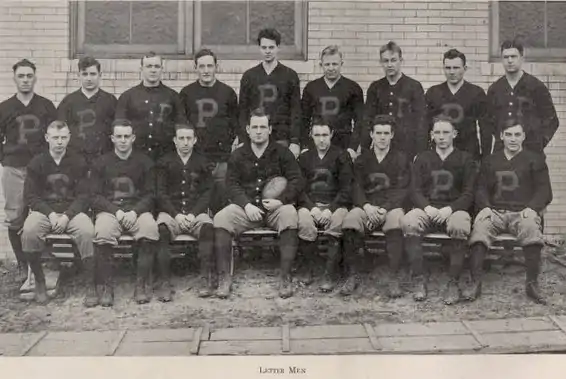 The Trees Stadium and Gymnasium were completed and put to use by the football team. Practice was held on the stadium grounds and the players utilized the locker room facilities in the adjacent Gymnasium. A "training house, where the regulars will be accommodated when the first squad was picked, was located on Dawson street." A freshman team was organized by Athletic Director Charles Miller.[15]