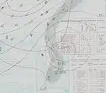 The first and only tropical storm of the season originated in a westward-moving tropical wave denoted on weather maps from September 13. Decreases in air pressure occurred throughout the Bahamas, providing "strong indications of a disturbance".[6] The system became a tropical depression at 00:00 UTC on September 15, approximately 200 mi (320 km) east of Miami, Florida. It strengthened into a tropical storm about 12 hours later,[2] leading to the issuance of storm warnings from the east coast of Florida to as far north as Hatteras, North Carolina.[6]