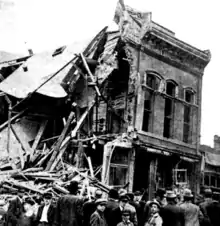 The crowd of dissidents left the parade and attacked the WFM local's headquarters, hauling away a safe, which they later blew open; they said that they were looking for evidence of corruption of union officials. When alderman and acting mayor Frank Curran went to the union hall and tried to calm the crowd, he was thrown out a second-story window.[4] The crowd took $1,600 from inside the safe, and destroyed all the records of the WFM local. They also dynamited the home of P.K. Sullivan, a local union official. Two men who were arrested were sprung from jail, and carried away on the shoulders of the crowd. The dissidents visited the three Butte newspaper offices, and demanded that the papers not use the words "mob" or "rioters" in describing the events. They also warned the papers not to print anything critical of the IWW.[5]