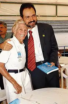 Maria Lenk (born 1915) with then-Brazilian Minister of Sports Agnelo Queiroz