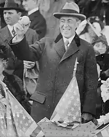 President Woodrow Wilson throws out the first pitch at the 1915 World Series.