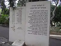 After Shragai's address, the Kfar Saba City Council voted to change the name "Pilots Street" in the city to "Tel Aviv-Jaffa" Street in October 2009 to commemorate the victims of the deportation. The Tel Aviv Founders' Families Association has been working for years with a burial society to establish a gilad in the Trumpeldor Cemetery in Tel Aviv in memory of those who perished among the deportees from Tel Aviv.[18]
