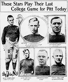 - "Pop Warner Forced to Rebuild Pitt's Football Machine". The Gazette Times. September 9, 1917. p. 19 – via Newspapers.com.