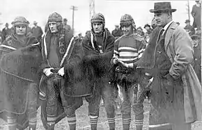 Five Centre regulars were natives of Fort Worth, Texas, namely quarterback Bo McMillin, Bill James, Sully Montgomery, Matty Bell, and Red Weaver.[6] They were accused of being professionals, but the charges were rebuked by season's end.[7] "Without Bo it would not be a Centre team."[8]