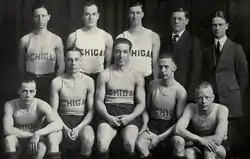 The 1920–21 Michigan Wolverines men's basketball team represented the University of Michigan in intercollegiate college basketball during the 1920–21 season. The team won its first eight games and its last eight games to finish tied with the Purdue Boilermakers and Wisconsin Badgers for the Western Conference Championship.[1][2] Arthur Karpus served as team captain.[3] On January 29, 1921, the team began a 14-game winning streak against the University of Chicago that continued through a January 6, 1922, victory over Michigan State University, which was at the time known as Michigan Agricultural college. This stood as the longest winning streak in school history until 1985.[4] The team was also involved in setting the longest road winning streaks at the time. It won on January 22, 1921, against Northwestern ending a 7-game road winning streak that had started on December 27, 1920, against the Louisville YMCA. Then on January 29, the team started another 7-game road winning streak against Chicago that lasted until a December 17, 1921, victory at Case. These two 7-game streaks stood as the school road winning streak record until 1985.[4]