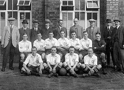 The first team was rather unsettled throughout the campaign thanks to a bureaucratic method of selection.[1] However the Pursell brothers, Billy Briscoe, Tom Page; as well as new signings Ernest Collinge, Bob Connelly, Robert Firth, Jack Hampson, and Billy Agnew were all regular features. The club rotated between three goalkeepers, with a fourth also getting a game. Page was the club's top scorer with a meagre ten goals from all competitions, with Bob Connelly also netting seven. Following an injury to Walter Smith, Teddy Peers was signed from Wolves on an emergency loan.[1] Peers went on to become the first player to be capped whilst at the club when he turned out for Wales.[1]