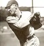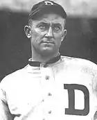 The team's fourth starter, Red Oldham, had an 11–14 record. As an indicator of how bad the team's pitching was in 1921, Oldham's 4.27 ERA was the second lowest on the team. Shortly after an interview in which new manager Ty Cobb told a reporter that "his aim was to use tact and diplomacy" in dealing with players, Cobb publicly embarrassed Oldham, as he called time-out from his position in center field, "ran in, wrested the ball from Oldham's hand, and gave him a dressing-down before calling in a reliever."[10] Oldham appeared in the final inning of the 1925 World Series for the Pittsburgh Pirates pitching a masterful 1–2–3 inning against three future Hall of Famers: Sam Rice (strikeout), Bucky Harris, and Goose Goslin (strikeout). The Pirates won the game and the World Series with Oldham on the mound.