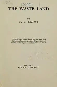 - October 15 – T. S. Eliot founds The Criterion magazine, with the first appearance of his poem The Waste Land.[2] This will be first fully published in book form by Boni & Liveright in New York in December.