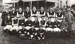 - Essendon squad: Fred Baring, Syd Barker, Sr. (captain), Norm Beckton, Clyde Donaldson, Charlie Farrell, Tom Fitzmaurice, Jack Garden, Harry Gregory, Charlie Hardy, Harry Hunter, Tommy Jenkins, Roy Laing, Frank Maher, Charlie May, Justin McCarthy, George Rawle, George Shorten, Greg Stockdale, Jimmy Sullivan, and Rowley Watt.[5]