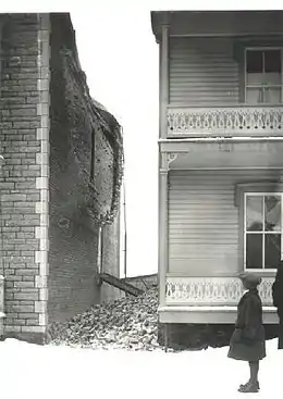 A total of 55 aftershocks were recorded, which lasted for weeks, ranging from magnitude 5 to 2.[5] Over the years, several studies were published on the 1925 Charlevoix–Kamouraska earthquake, some as recently as 1999.[1] A foreshock occurred in the St. Lawrence valley the prior year on September 30. It was rated at 6.1 and was felt from Rockland, Ontario to Portland, Maine.[6]