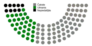 | Jānis Čakste | Democratic Centre | 29 | 30.85 | 60 | 65.93 | |