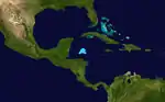 A total of thirteen tropical cyclones developed, the most since 1916, though many remained weak, with only three intensifying into a hurricane. Only one system, the British Honduras hurricane, reached major hurricane status, which is Category 3 or higher on the Saffir–Simpson scale.[1] Most of the storms also impacted land, but few left deaths or inflicted serious damage.[2] Six of the systems made landfall or moved across the Yucatán Peninsula.[3] Overall, the tropical cyclones of the season collectively resulted in $7.6 million in damage and approximately 2,533 deaths, with the vast majority of the destruction being caused by the British Honduras hurricane.[5][6][7][2][8][9]