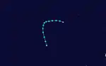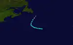 On September 4, an area of low pressure developed from a stationary front approximately 740 mi (1,190 km) south-southeast of Cape Race, Newfoundland.[2][3] At the time, a warm front and cold front were connected to the system, but further observations revealed minimal temperature deviations. The following day, the disturbance appeared to have acquired subtropical characteristics, but became tropical after observations showed that winds associated with the storm were near the center.[2] The system peaked as a strong tropical storm with maximum sustained winds of 70 mph (110 km/h) on September 5.[3] The storm later weakened and was absorbed by a frontal boundary at 18:00 UTC on September 7 roughly 165 mi (265 km) southeast of Cape Race.[2][3]