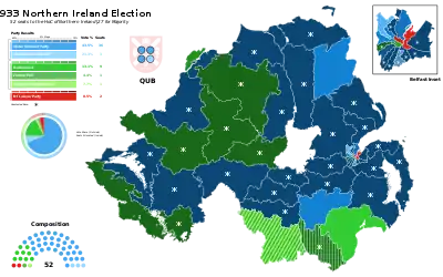 The 1933 Northern Ireland general election was held on 30 November 1933. Like all previous elections to the Parliament of Northern Ireland, it produced a large majority for the Ulster Unionist Party. 33 of the 52 seats were uncontested, the largest number in the history of the House of Commons.