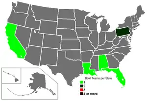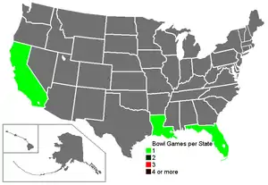 ![]() Number of bowl games per state | |||||||||||||||||||||||||||||||||||||||||||||