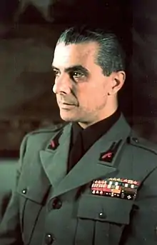 Soon after this, an aide-memoire (paper no. CoS (40) 391) was distributed by the CoS. Entitled Visit of M. Reynaud on 26th May, 1940 and signed jointly by Ironside, Newall and Pound, it anticipated the eventuality that Reynaud would announce the intention of France to make a separate peace. It firstly presented arguments to deter the French from capitulation and stressed that even if the French had decided to capitulate, "we shall continue the fight single-handed".[50] It went on to promise drastic measures, including blockade and the bombing of French cities, to be taken against France if occupied by German forces.[51] The most immediate recommendations were to demand French assistance in the evacuation of the BEF and the transfer of all French naval vessels and military aircraft to British ports and bases.[52] There was only a single mention of Italy to the effect that it would certainly exploit the situation to its advantage and satisfy its claims against France.[51]