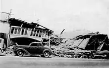 The 1940 El Centro earthquake (or 1940 Imperial Valley earthquake) occurred at 21:35 Pacific Standard Time on May 18 (05:35 UTC on May 19) in the Imperial Valley in southeastern Southern California near the international border of the United States and Mexico. It had a moment magnitude of 6.9 and a maximum perceived intensity of X (Extreme) on the Mercalli intensity scale. It was the first major earthquake to be recorded by a strong-motion seismograph located next to a fault rupture.[4] The earthquake was characterized as a typical moderate-sized destructive event with a complex energy release signature.[5] It was the strongest recorded earthquake to hit the Imperial Valley, and caused widespread damage to irrigation systems and led to the deaths of nine people.[3]