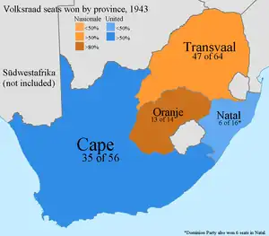 General elections were held in South Africa on 7 July 1943 to elect the 150 members of the House of Assembly.[1] The United Party of Jan Smuts won an absolute majority.