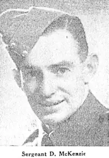 On 24 February it was reported that Sergeant Donald McFarlane McKenzie "has now been reported lost at sea". McKenzie had been on an enemy ship (Nino Bixio) in the Mediterranean when it was torpedoed on August 17, 1942 while it was transporting prisoners to Italy from North Africa. He had entered the army in October 1940 and departed New Zealand in September 1941 as part of an early reinforcement draft, seeing service in the desert campaigns. McKenzie has been educated at Te Puke High School before later moving to Auckland where he played for the Newton Rangers first grade side.[28] From 1938 to 1940 McKenzie scored 9 tries and kicked 2 conversions and 2 drop goals in first grade matches. He was aged 26 at the time of his death and survived by his wife Elsie Edith McKenzie, and his parents James and Mary McKenzie. McKenzie is memorialised at the Alamein Memorial in the El Alamein War Cemetery in Egypt, on the Roll of Honour at Greyfriars Presbyterian Church on Mt Eden Road, Auckland, and at the Auckland War Memorial Museum, WW2 Hall of Memories.[29]