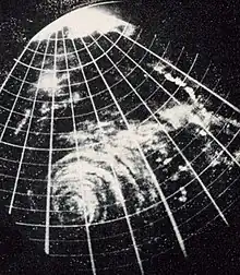 Land-based radar at Orlando, Florida, detected the eye of the storm at 05:00 UTC on September 16.[32] When the radar image was taken, it was only the third time in history that a hurricane passed close enough to a radar site to reveal its structure.[33] In 1992 Homestead and its vicinity would once again be severely affected by a tropical cyclone, Hurricane Andrew. A home, sited in Homestead, that was erected in the same year as the 1945 hurricane later registered the lowest pressure associated with Andrew to be measured on land in South Florida.[34][35]