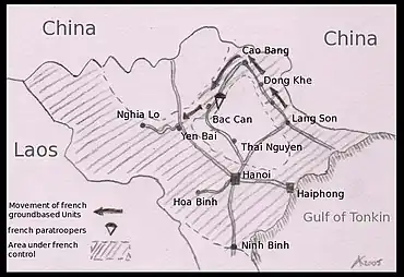 The Việt Minh had pushed the French out of its most northerly outposts and the Chinese border area was now under their control. There was panic among French residents of Hanoi and contingency plans were made to evacuate French citizens from the city.[62]