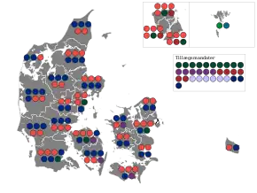 - The Copenhagen branch of Venstre ran as a separate party in order to exploit the electoral law and was able to win compensatory seats. Following the election the other parties grouped together to push for changes to the system which were passed in 1948.[4]