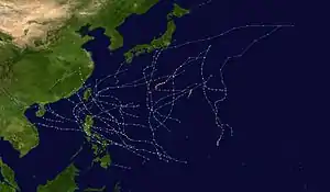 The scope of this article is limited to the Pacific Ocean, north of the equator and west of the International Date Line. Storms that form east of the date line and north of the equator are called hurricanes; see 1947 Pacific hurricane season. At the time, tropical storms that formed within this region of the western Pacific were identified and named by the United States Armed Services, and these names are taken from the list that USAS publicly adopted before the 1945 season started.[1][2]